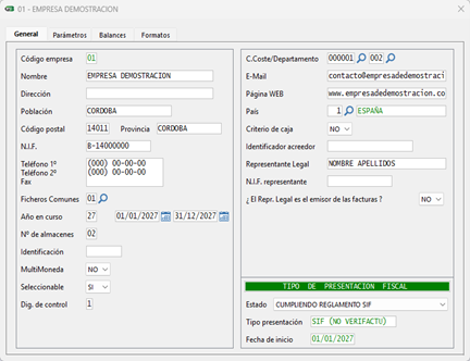 Cumpliendo reglamento S.I.F.: En esta configuración el sistema se rige bajo los requisitos contemplados en lo dispuesto en el artículo 29.2.j de la Ley 58/2003, de 17 de diciembre, General Tributaria, en el Reglamento que establece los requisitos que deben adoptar los sistemas y programas informáticos o electrónicos que soporten los procesos de facturación, aprobado por el Real Decreto 1007/2023, de 5 de diciembre, en la Orden HAC/1177/2024, de 17 de octubre.