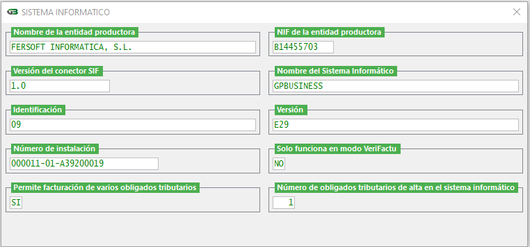 GPBUSINESS S.I.F. / VERI*FACTU
